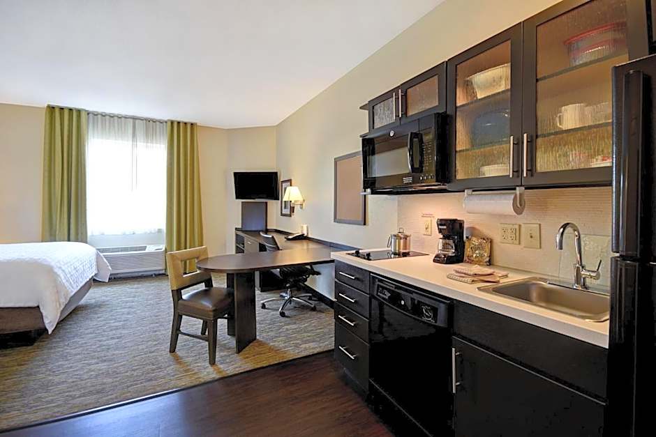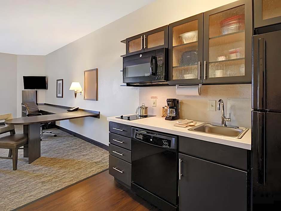 This king studio suite offers a flat-screen TV with cable and satellite channels, a fully-equipped kitchen and a dining area.